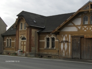 Eines der ersten Pojekte war die Giebelseite die von Neustadt her kommend weit sichtbar ist. Es sollte ein neuer Farbanstrich werden, der mit Geldspenden von Bürgern finanziert wurde. Beim genauen prüfen zeigte sich allerdings, dass einige Balken bereits morsch waren, so dass sie dringend erneuert werden mussten. Das war allein mit Helfern und Vereinsmitgliedern nicht machbar. Die Zimmerei und Holzfirma Klemm aus Lohmen übernahm den Auftrag und erneuerte auch gleich einige Balken auf der gegenüberliegenden Seite.